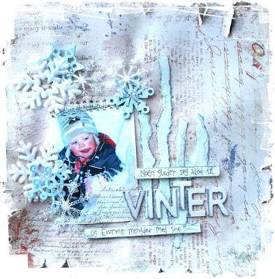 Jeg begynner å fryse når jeg ser den layouten der!! For en skremmende realistisk vinter layout! Takk for klemmen på Scraporama - neste gang trenger vi litt mer tid sammen :) Klem